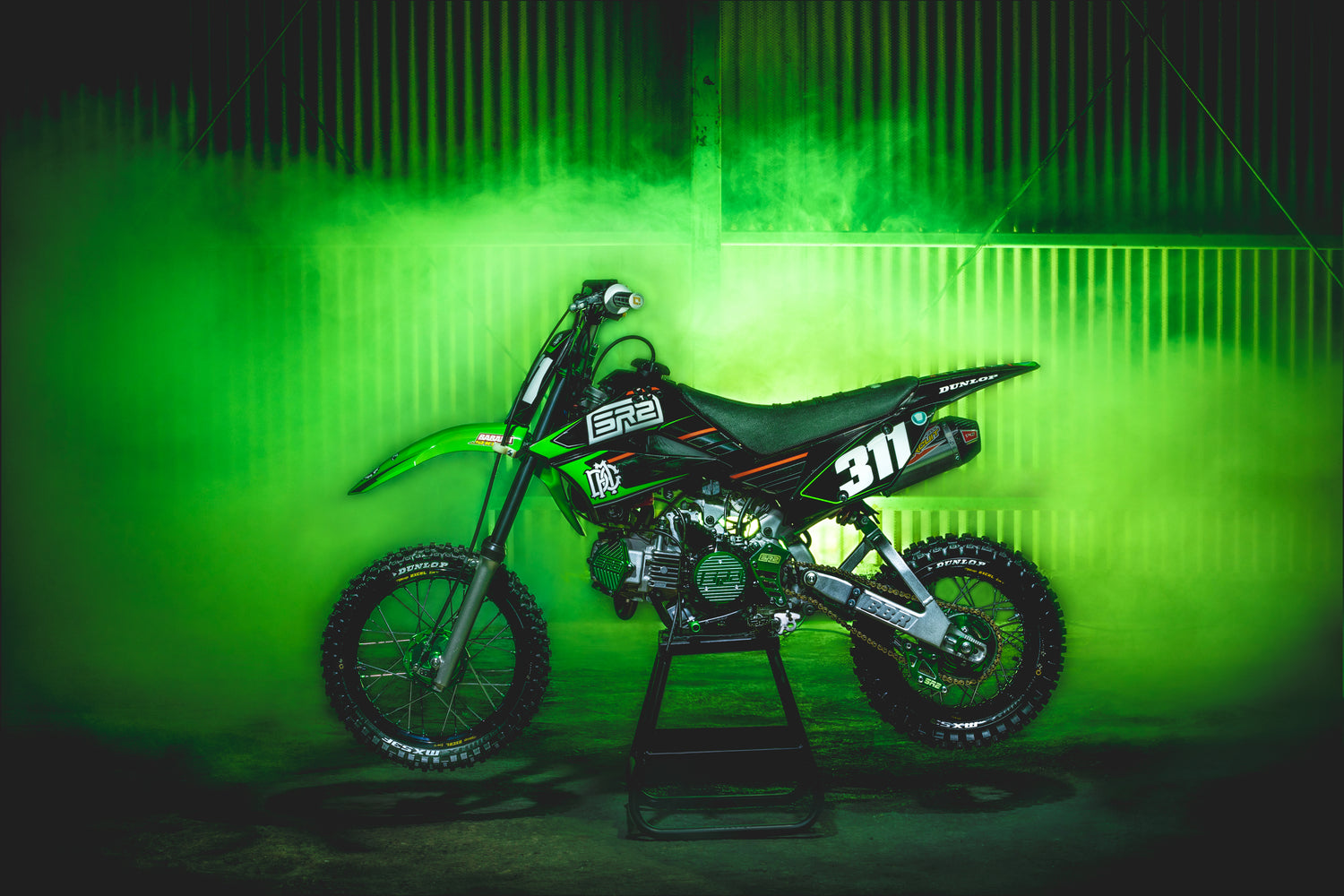 FLAMES ENGINE SIDE COVER - GREEN - KLX110L